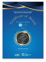 Selected as one of 12 finalists out of 3,500 FinTechs globally. Winner of Client-Centricity Award